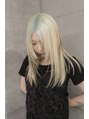 滲み出るような彩度で出したグリーンのルーツカラー。残留しないのでブロンドヘアに飽きた人の気分転換にもオススメです。[ダブルカラー/ハイトーン/ルーツカラー/デザインカラー/ケアブリーチカラー/ハイトーンカラー/顔周りカット/レイヤーカット]