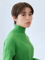 すっきりさせたショートヘアに長めの前髪を合わせる事でクールな女性に。カラーは落ち着いたトーンのアッシュブラウン。ストレートアイロンで中間のボリュームをおさえ、毛先は丸みを付けずさっと抜く。バームを全体に馴染ませハチ周りはコンパクトに◎