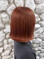#オレンジブラウン#切りっぱなしボブ#ミディアム