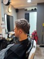 全体をすっきり短めに整えたベリーショートスタイル。自然な立ち上がりと動きが出るように仕上げています。サイドとバックは短くバリカンで、清潔感と漢らしさがしっかり出ます。シンプルですが顔立ちが映える大人のbuzzです。