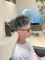 1番人気のヘアスタイル!フェードショートにホワイトハイライトとツイストパーマを組み合わせたトレンドてんこ盛りスタイル^_^