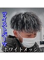 ホワイトハイライト/ツイストパーマ/ツーブロック/マッシュ