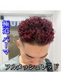 カット、フルメッシュ、レッドカラー、極道パーマ