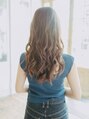 縦長ロングシルエットスタイル。ウェーブで動きを出してナチュラルなボリュームが出るようにしています。顔まわりにレイヤーを入れて動きと抜け感を作っています。顔まわり以外はあまりレイヤーが入っていないので、アレンジにもおすすめなスタイルです。