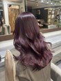 ピンクカラー×コテ巻き風パーマ