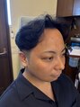 カットはサイドツーブロック、バックはつなげて、カラーが取れやすくなっているハイダメージした髪質にケラチンタンパクとCMCによる毛質改善のケアカラーできしんでいた、ハイカラーの茶髪をナチュラルブラックにしヘマチンを入れ込み色もちを良くしました。