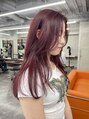 ダブルカラーチェリーレッドピンクブラウン韓国レイヤーロング