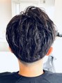 フロントはスパイラル、サイドとバックはソフトにツイストを加えた縦に落ちつつも流す事のできるスタイル。1.5ミリからの刈り上げはアクティブな大人の男性にベスト。