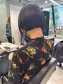 黒髪ボブボブ_ハイトーンカラー_前髪パーマ_ぱっつん前髪