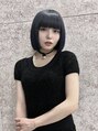 切りっぱなしボブ/ブリーチ/ネイビー
