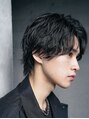 メンズ前下がりセンターパート波巻きツイストスパイラルパーマ