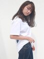 ミディアムレングスの切りっぱなしロブスタイルです。前髪もストレート感がある、うざバングにしました。ゆるーくパーマをかけて、カラーはダークシャドウアッシュです。モードかっこいい感じがGOODです。