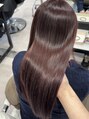 明るめのベースからワンカラーでピンクブラウンに♪ベースが明るいと発色しやすいです。トリートメントでケアしているので扱いやすいロングスタイルです。