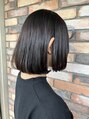 Aラインの厚みのあるボブ。可愛いイメージですっきり切りたい方にお勧めです。まとまりやすいのでお手入れも簡単です。ワンカールしっかり巻くとより可愛さが出ます。