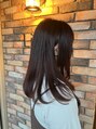 重めの毛先でしっとりまとまるロングスタイル。厚めに残したおかげでストレート、ワンカール、カール、どのスタイリングもやりやすいです。カラーは落ち着きのあるレッドバイオレットでツヤ感を。