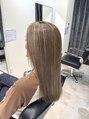 ベースカラーを赤みのないナチュラルベージュに染め細かいハイライトをちりばめて、立体感のあるヘアカラーに時間経過とともに、色が抜けていってもハイライトのコントラストがあり根元の伸びが気になりにくいと言うメリットがあります