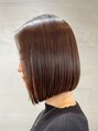 切りっぱなしボブ/暗めココアベージュ/小顔カットデザインカラー
