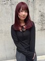 顔まわりにしっかりレイヤーを入れることでお顔を小さく見せる効果あり!ブリーチなしダブルカラーの赤髪も室内と自然光で見え方が違うので楽しめます♪