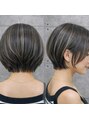 - 二子玉川/白髪/ショートボブ/艶カラー/50代/ミルクティーブロンド/顔周りカット