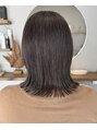肩ラインで揺れる大人の切りっぱなしボブ。重さを残しつつ毛先に自然な動きをプラスし、ツヤとまとまりを重視。派手すぎない上品さと、白髪ぼかしハイライトによる透明感が魅力のナチュラルな大人スタイル。