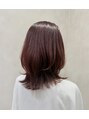 切りっぱなしスタイルのロブで重みを出してます。写真は32mmのコテでゆるくウェーブ巻き。色は深みのあるブラウンで特に秋冬にオススメスタイルです。