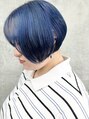 いつも青にしてくださるお客様青は髪の毛に残留しづらくいつもニュアンスの違った青にさせていただいておりますブリーチリタッチの周期は3週間~1ヶ月半以内がおすすめですカットは後ろを刈り上げていますコンパクトに見えておすすめです!