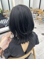 外ハネレイヤー/くびれヘア/レイヤーボブ/ブルーブラック