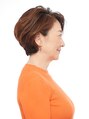 白髪が伸びてきても目立ちにくい明るめベージュブラウンで、肌のトーンもアップします。前髪を作り分け目が出ないようにすることでトップに高さがでます!