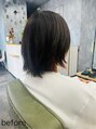 広がりやすい毛質だったので、毛量調整と長さの設定を考えてカットさせて頂きました。ナチュラル/ボブ/ミディアム/レイヤー/カラー/パーマ/白髪染め/リタッチ/縮毛矯正/学割/ヘアセット/ヘアアレンジ