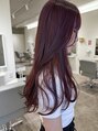 ブリーチなしのチェリーレッドは、深みのある赤にほんのりピンクっぽさをプラスした色味です!ナチュラルな髪色でも透明感が出て、ツヤっぽく見えるのが魅力ですれ派手すぎず、でも存在感はしっかりあるので、大人っぽく華やかな印象に仕上がります!
