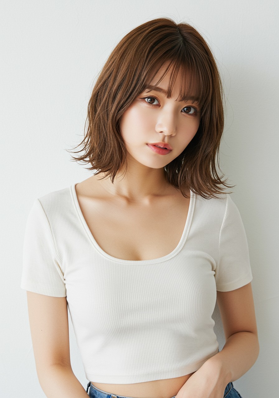 #磐田 切りっぱなしボブ×シナモンブラウン