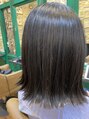 お重さの中に軽さも表現する為に、毛先を軽めに。赤みも抑えるブルーグレージュで暗さの中に個性を!