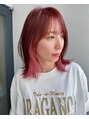 インナーカラーピンク_ぱっつん前髪_切りっぱなしボブ