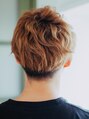 サイドとバックを刈り上げた爽やかなショートスタイル。刈り上げ以外のところは長さを残し気味にして動きが出せるようにしています。トップにはパーマをかけてよりスタイリングで動きが出せるようにしています。スタイリングはジェルワッスがおすすめ!