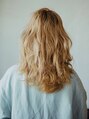 ダブルカラーで、透明感のあるハイトーンのベージュカラーです!カットは、レイヤーを入れて動きをだします。フロントはセンターに分けます。仕上げはウェーブをだしてコテで巻きます。毛先は外ハネにするのがポイントです。【岡山/錦町/ハレマチ通り】