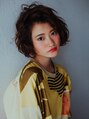 ボブスタイルですが、首のラインがスッキリ見えて、抜群なスタイルです!!大胆なパーマが可愛らしさアップさせます。バングはあげることで甘さと辛さのめりはりがついてgood!!【岡山/錦町/ハレマチ通り】