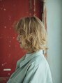 ハイトーンのブロンドヘアーに作りすぎないカール感でナチュラルなスタイリイングにすることで程よい外国人感と、ふわっとした女性らしい質感を作ります。根元をあえて暗く残すことによって動きに立体感が出ます。