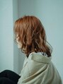 前髪長めのひし形フォルムのレイヤースタイルです。カラーは全体ブリーチを1~2回してオレンジ系カラーをオンカラーしています。髪の毛の量が多い人は量感調節を。