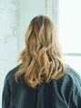 最近流行のバレイヤージュ。ハイライトよりもブリーチの範囲が広く。立体的でくっきり線の出にくいグラデーションカラーにしたい方にオススメです。ベージュブラウンのカラー。巻くだけで簡単に立体的になる為、全体的に巻いて、オイルで艶だしてあげましょう