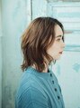 前髪長めのワンレングスベースのミディアムスタイル。毛先はナチュラルなくせ付けで顔周りと中間メインにカールを付けています。表面に細い束感をつけるのがオシャレ見えするポイントです!仕上げはシアバターがおすすめです!