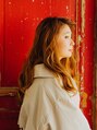 毛先は軽めに作った人気のロングスタイル。表面のツヤを生かすためレイヤーはあまり入れずに仕上げています。スタイリングは表面をポイントでウェーブ巻きにし、軽く動きをつける程度。オイルを全体に馴染ませツヤを足しました。