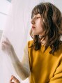 切りっぱなしラインのミディアムボブにウェーブでボリューム感のあるスタイルに☆バングをつくることで、クールすぎずやわらかな印象になるようにしています。表面をメインにハイライトをいれることで立体感や動きが出るようにしています。