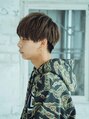 マッシュベースのバング長めのスタイルに、襟足は刈上げのメリハリスタイル!!バングは長めでも、トップにレイヤーを入れて動きのあるスタイルに!カラーはベージュ系の明るめのカラーリングに、襟足の刈上げているところはブラックにメリハリを出します。
