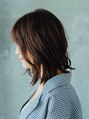 肩少ししたくらいのレングスを生かしたスタイル!ナチュラルなハネ感で動きを出すことで毛先がランダムになりラフな印象になりバングは透け感のあるシースルーバングで全体にバランスのよいスタイルに!ヘアカラーは暖色系のブラウン系でツヤ感アップ。