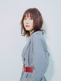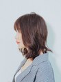 肩少ししたくらいのレングスを生かしたスタイル!ナチュラルなハネ感で動きを出すことで毛先がランダムになりラフな印象になりバングは透け感のあるシースルーバングで全体にバランスのよいスタイルに!ヘアカラーは暖色系のブラウン系でツヤ感アップ。