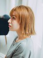 顎下ラインの切りっぱなしスタイル。外はねしやすいように量感を調節しているので、仕上げにはオイルを使うとツヤ感が増します。バングを眉下にすることで、ガーリーすぎないスタイルになります。表面の毛束をとってミックスで巻くとこなれ感が増します!