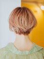 ふんわりショートボブです。カラーはハイトーンで明るい印象にみせてくれます!前髪を少し短めに切る事で可愛い感じに!!スタイリングはストレートアイロンで、内側に入れるように通すだけで簡単に決まります!!!