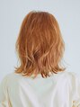 長めぱっつんボブのスタイルに表面、顔まわりにレイヤーが入った重軽なヘアスタイルです。前髪は目上ギリギリで少し流しています。カラーは明るめのオレンジベージュでツヤ感をプラス!全体をコテでゆるく巻き、崩します。