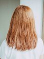 ワンレングスベースでトップにレイヤーの入れたスタイル。カラーは重たく見えがちになってしまうため、明るめのオレンジで柔らかさと軽さを出しました。スタイリングはアイロンでワンカール巻いて、エヌドットオイルで仕上げました。
