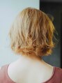 レイヤーが入ったボブショートは重くならず、毛先に動きが出て可愛らしい印象になります。前髪もセンターで分けることで垢抜けた印象に。ハイトーンのヘアカラーは柔らかいスモーキーベージュで全体の印象をふんわり見せてくれます!